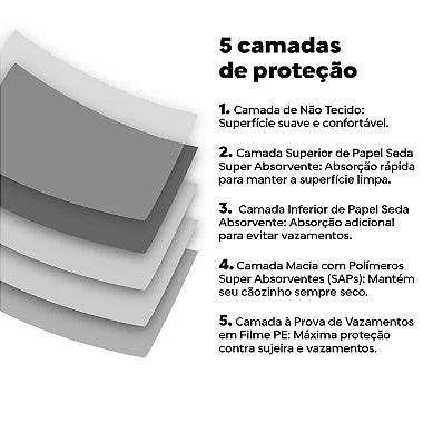 A tecnologia do Tapete Higiênico Premium Econopad é incomparável! Com suas 5 camadas de proteção, seu cãozinho estará sempre confortável e seco.