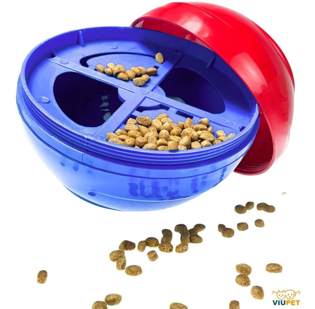 Desrosqueie o produto e coloque ração ou petiscos dentro. Junte os dois lados e rosqueie para fechar. Feche gradualmente o painel da meia-bola para a diversão ficar mais desafiadora.