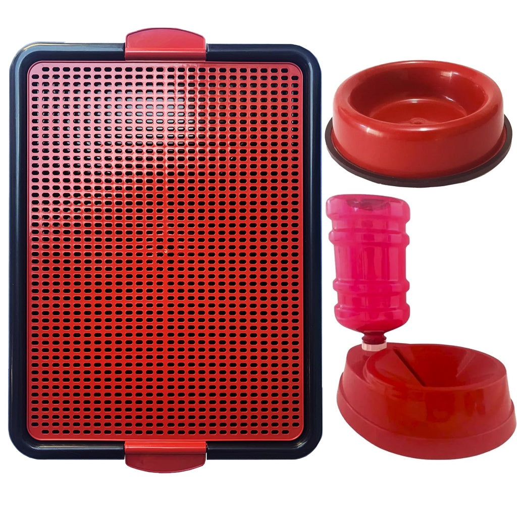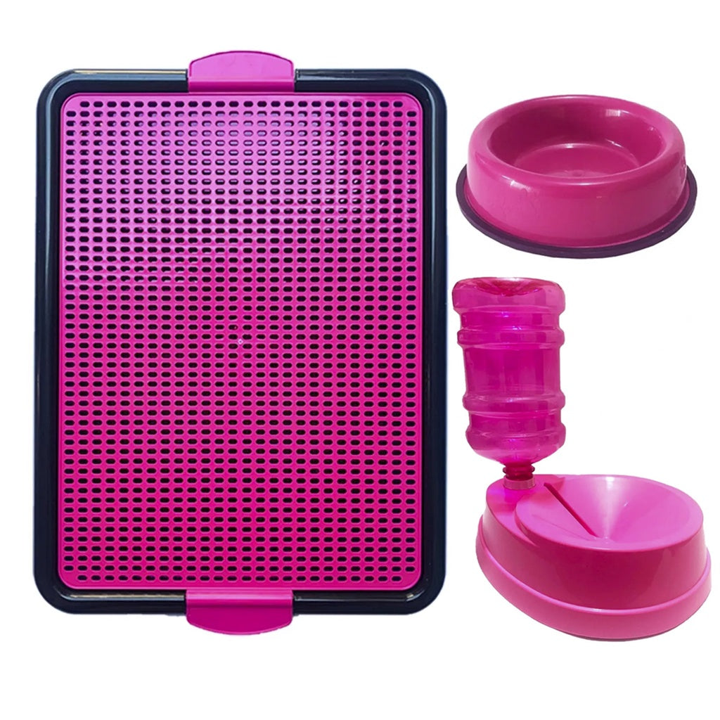 Kit Sanitário Canino + Bebedouro Não Molha Pelo + Comedouro Pesado 300ml